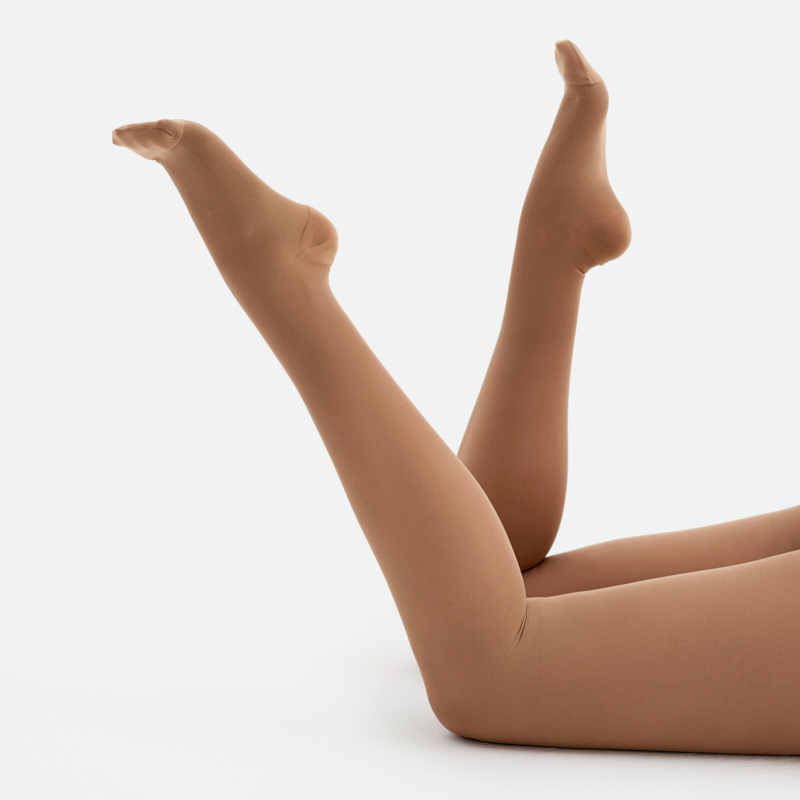 - Благородный полуматовый оттенок полотна маскирует видимые дефекты вен и делает женский образ более элегантным.
