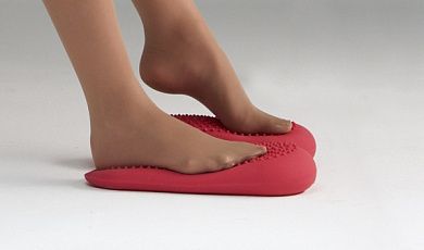 Двусторонняя массажная поверхность венотренажера прекрасно подходит для приятного оздоровительного массажа стоп. Гладкая поверхность массажных шипов не оставляет зацепок на колготках и чулках. Давление воздуха регулируется индивидуально. В комплекте с венотренажером идет насос.