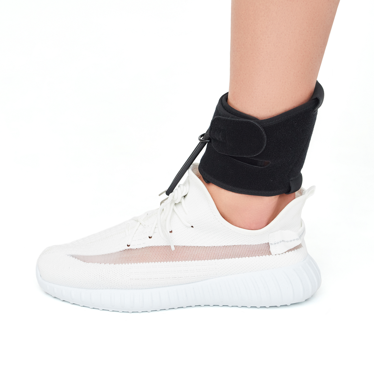 • Совместимость с любой обувью: ортез легко крепится к шнуровке, не требует покупки новой обуви и подходит для открытой и закрытой обуви.