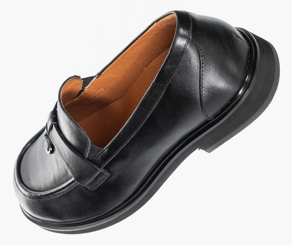 - Нескользящая подошва из полиуретана цельнолитого типа обеспечена небольшим подъемом в области пятки.